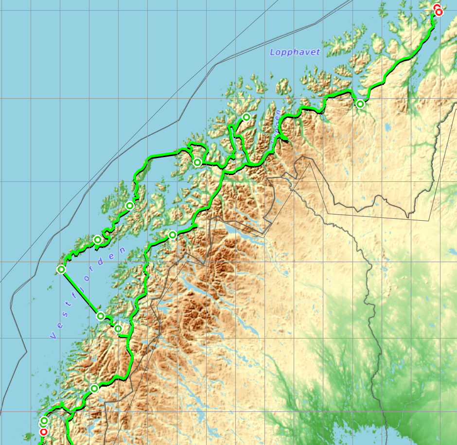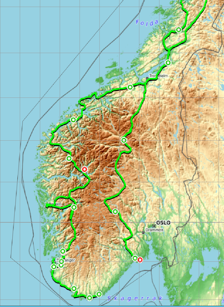 Parcours effectué pour rejoindre la Norvège Sud.